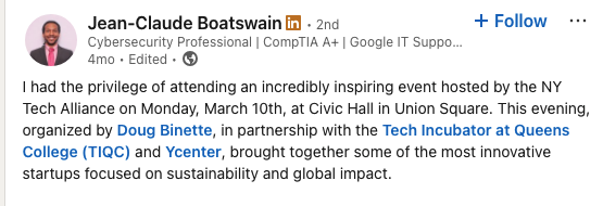 Ycenter x Georgetown University hosted a workshop as a way to launch student Eco-preneurship club promoting entrepreneurial ventures that focus on climate and our planet at large.